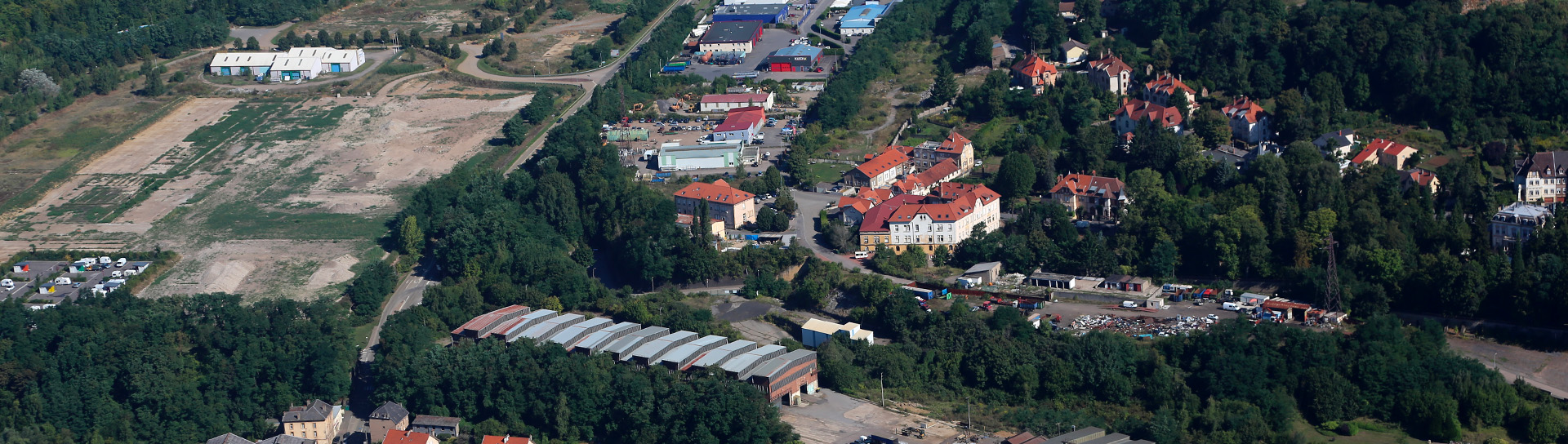 - La partie basse est davantage consacrée à l'habitat, avec la création prochainement d'un nouveau quartier résidentiel. La déchèterie communautaire d'Algrange, avec un espace recyclerie, est également implantée sur la zone, apportant un flux journalier de visiteurs et d'habitants.