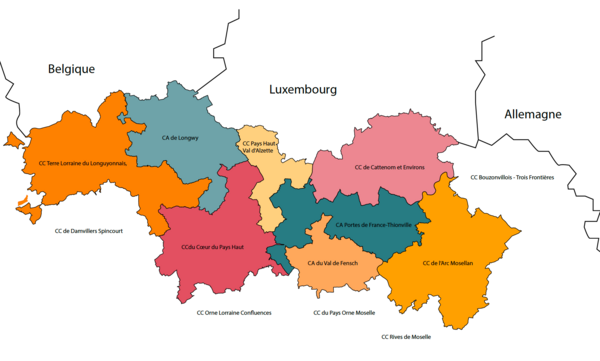 Le Pôle Métropolitain Frontalier réunit 8 Etablissement Publics de Coopération (EPCI) : Portes de France-Thionville, Val de Fensch, Longwy, l’Arc Mosellan, Cattenom et Environs, Pays-Haut Val d’Alzette, Cœur du Pays Haut et Terre lorraine du Longuyonnais.